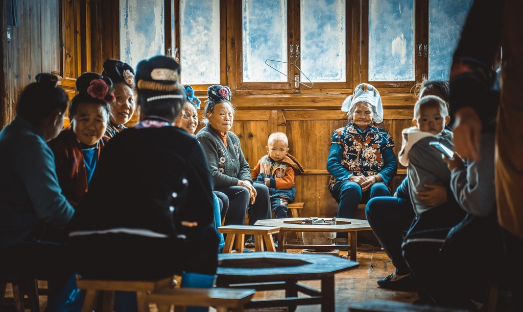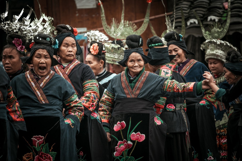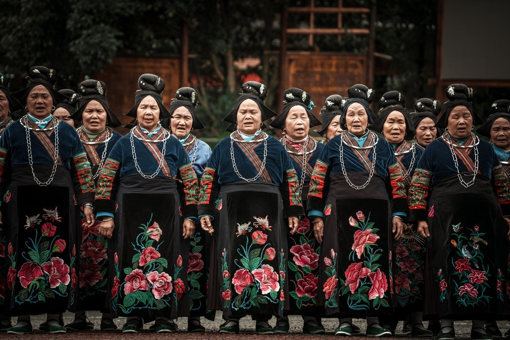 寨里的老人也不会觉得自己资历老,就懈怠自己的装扮,歌唱的时候都会把自己最漂亮的衣服穿出来。