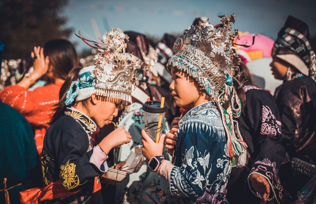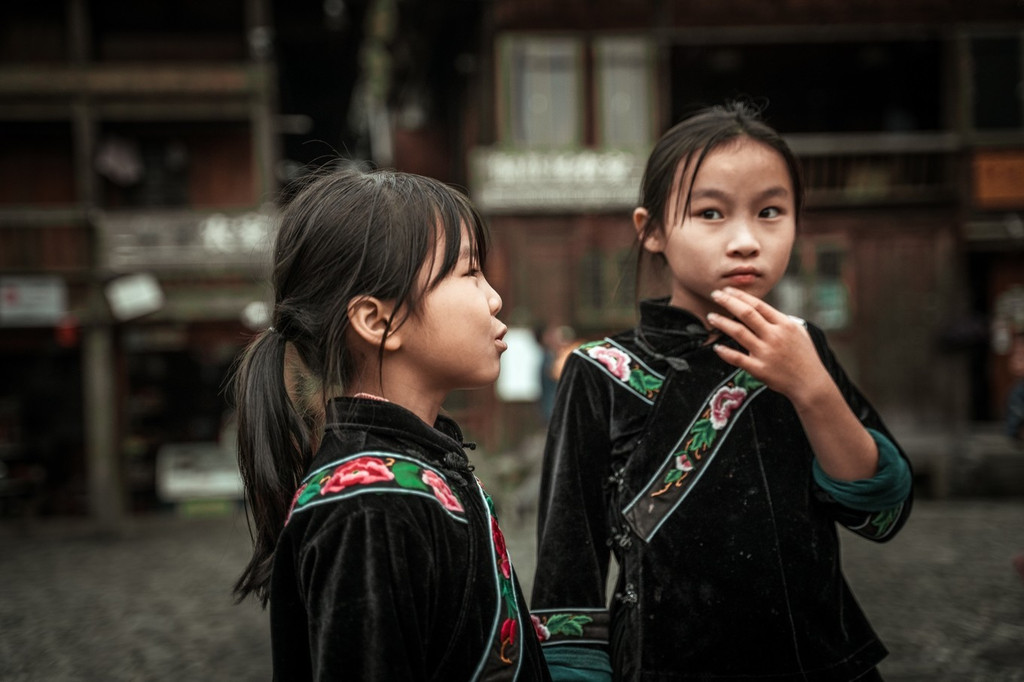正对着一个苗族姑娘拍照,突然有人在背后拉我衣角,回头一看是个小姑娘:“哥哥,是不是想约我的姐姐?我都口渴了,给我买瓶可乐,我好去告诉我的姐姐。”