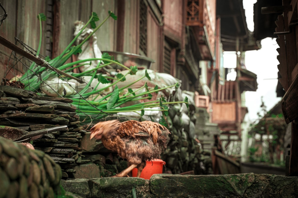 褐色的木屋,不需要特别的颜色装饰,行走其间,呼吸泥土、青禾、花朵的芳香,尽管中间还夹杂着一点家禽粪便的气味,但并不讨厌,这才是真正乡村的味道。