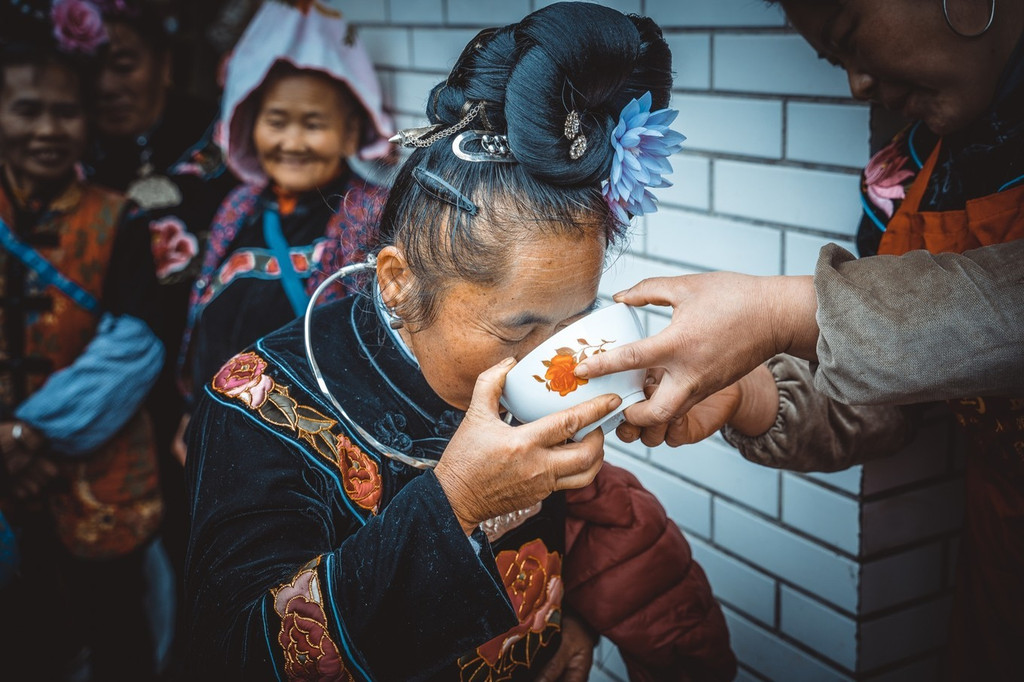 拦路歌唱起来了,姑娘们盛装出来了,牛角盛满清洌的米酒,双手捧到客人的嘴边;