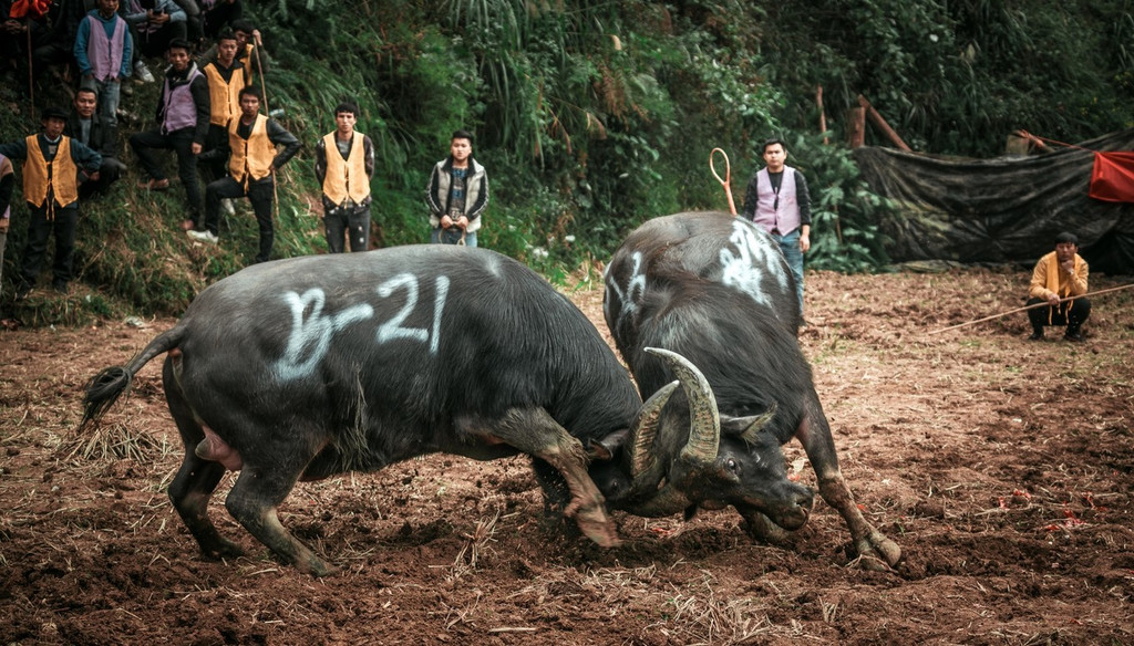 不同的牛代表着不同的村寨,斗胜的牛会被称为牛王,为全村寨带来荣誉,而受到人们的爱戴和崇拜。所以一头好的斗牛往往被视为全村寨的财富。