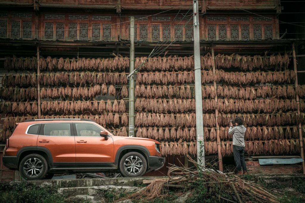 小黄寨内的道路比较狭窄,牲畜也四处散养,对于一台SUV来说,需要非常比较熟练的操控才行,好在大狗有360度影像系统,可以把四周的情况投射中控大屏上,在距离低于100毫米后,还会报警显示,对于新手格外友好,行车可以更游刃有余。