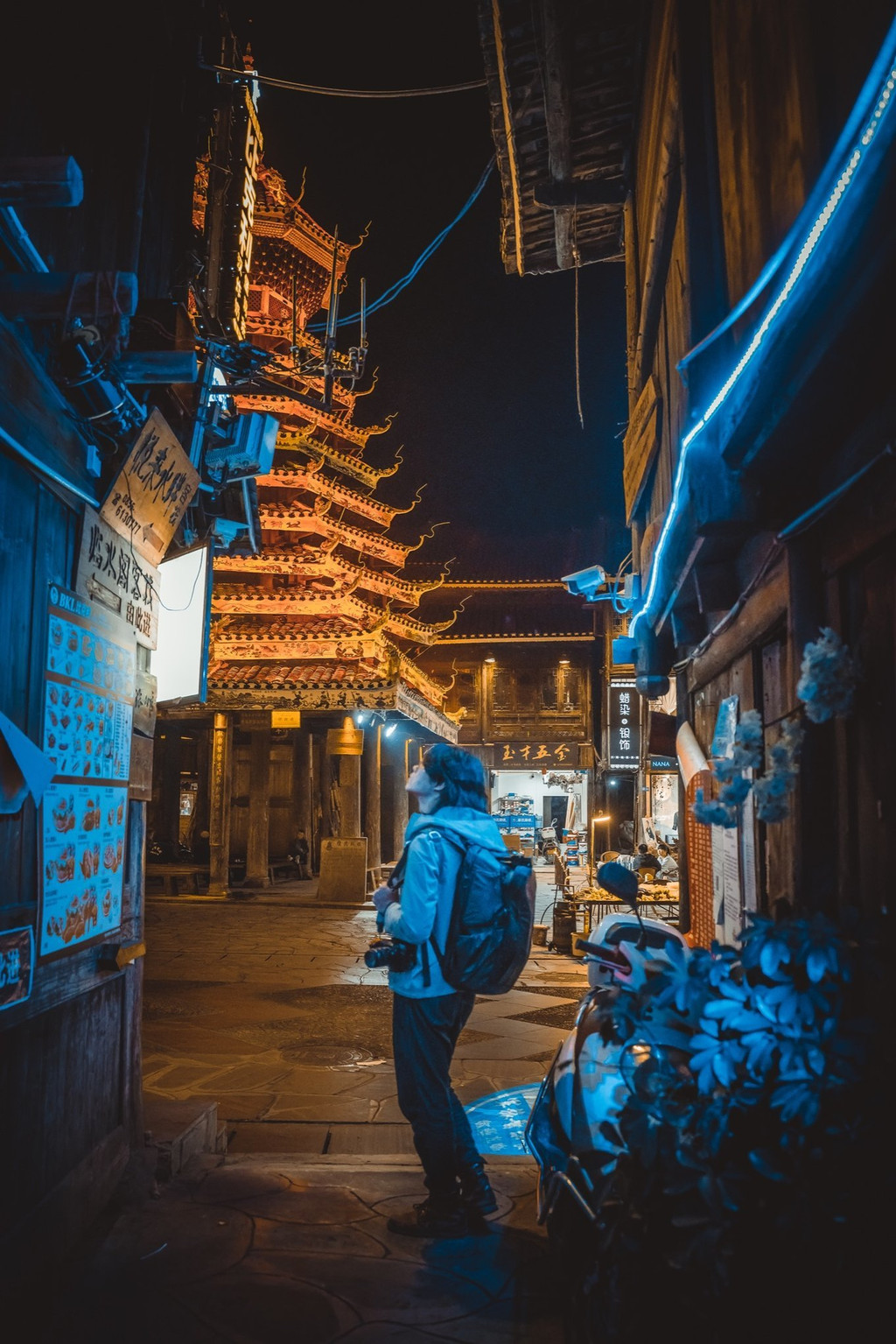 与美景美色相伴的时光总是溜得太快,走出老街已近黄昏。一会,暮色渐浓,街灯逐次点亮,远处的鼓楼、戏台和花桥在华灯下火光中渐渐隐匿。一幅幅影影绰绰的粗线条窗花剪影,于皎月之下诗意盎然。夜色隔绝了白日游客的喧嚣,放下行囊,游走街头,店铺虽然依旧开着,但老板们早已不把做生意当回事,也许,他们更清楚这些留宿在寨子里的人们,想听大歌的心情更多于购物,偶有三两微醺之人摇晃着走过街头,也觉得应景,毕竟,所有追求的虚无,不如放下自我之后的一场醉。