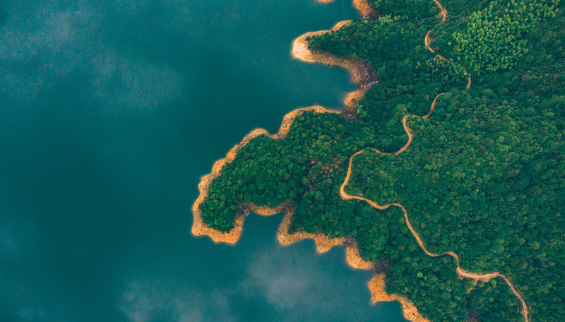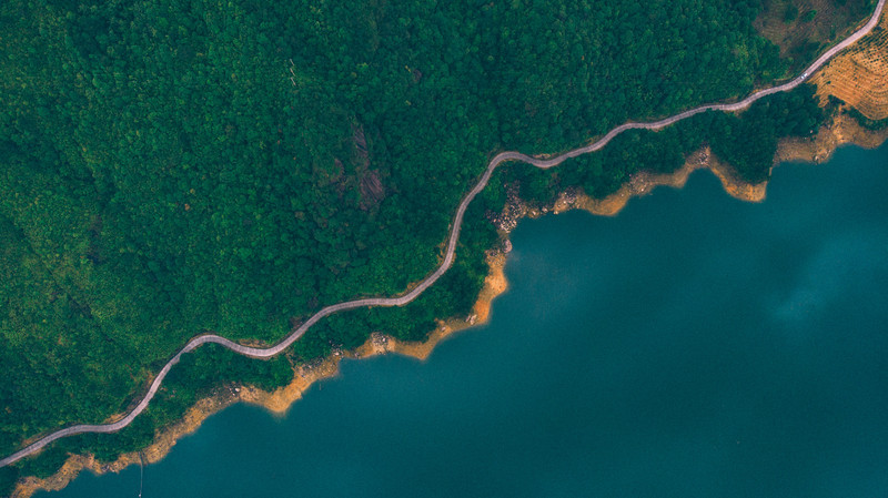 进山的途中有个高店水库,在地上看一般,只感觉辽阔,不过飞上天才发现它的美~~