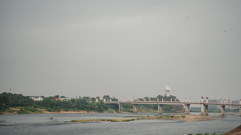 古街是沿河而建,走出古街你能看你就能看到信将,江边远远的能看到一个雕塑离在洲头,那便是辛弃疾的雕像,也是大气磅礴了。