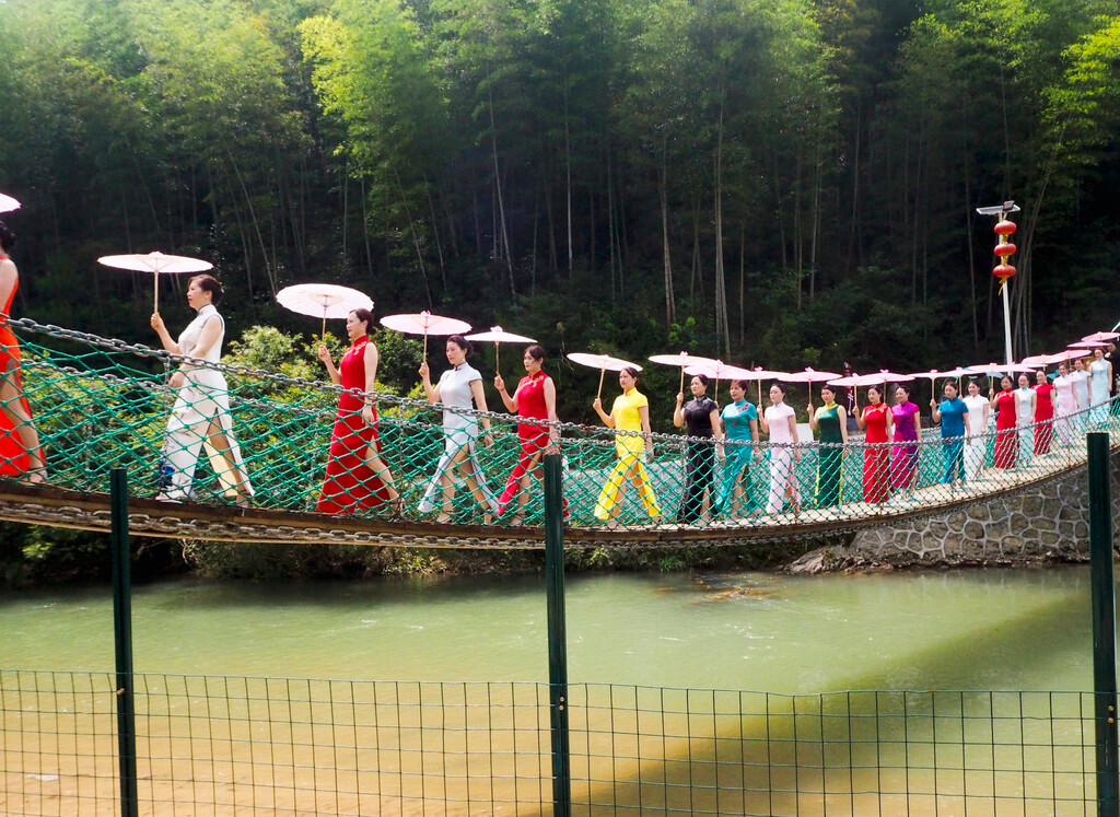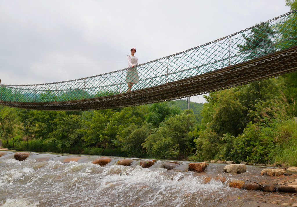 在河的上游几百米处还有个吊索桥,站在吊索桥上随意凹个造型,出片率简直不要超高哦。桥上的她就是带我游览的人,旅游科班毕业,为了公务员身份而放弃了县人社局办公室的岗位考到葛仙山镇,人聪明又漂亮,还可爱,绝代芳华。感谢镇政府的贴心安排,我会常来的。