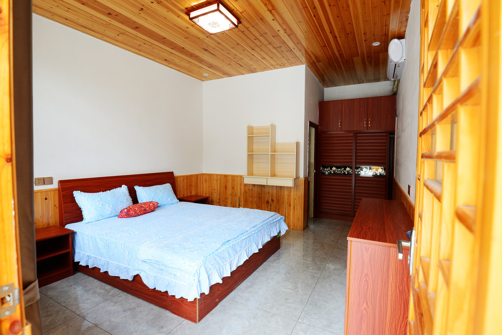 院子里特意为专心码字的人备了几间卧室,黄黄的木头搭配嫩绿的床具,既简单又典雅,在里面住个两晚,没读过书的我感觉自己也是文化人了,身价高了两个档次。