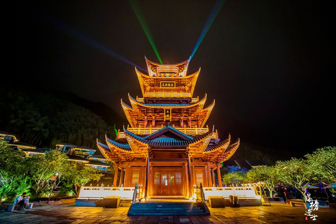 在灯光的装点下,古朴的建筑散发着神秘色彩,像极了某个电影里只存在于时光之外的小镇,有种遥远而美好的风情。
