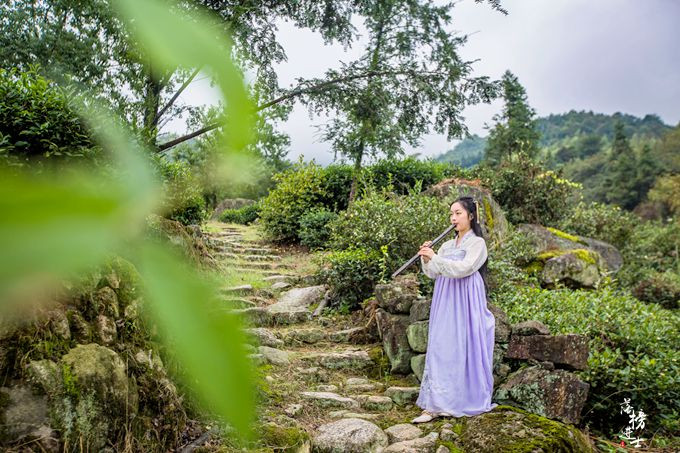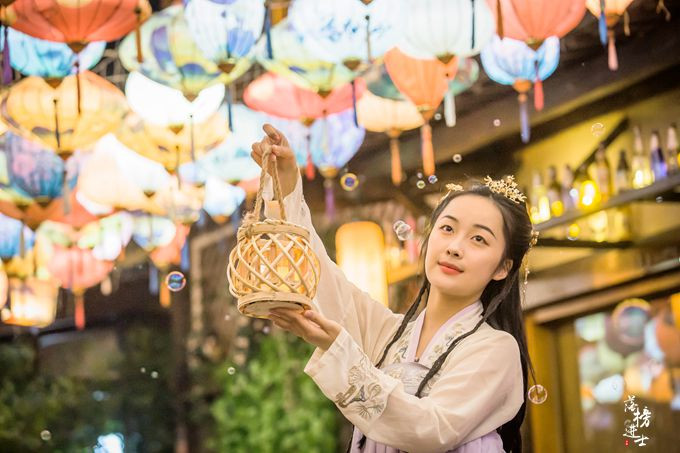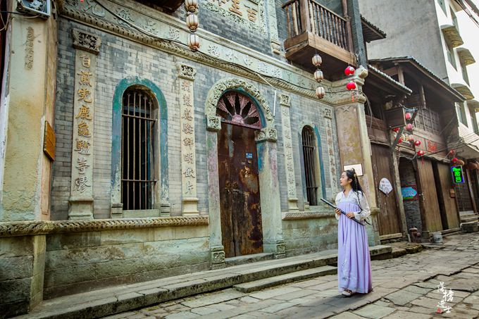 穿上古装,在这充满了古色古香的街道中,复古的背景瞬间便勾勒出古典韵味。