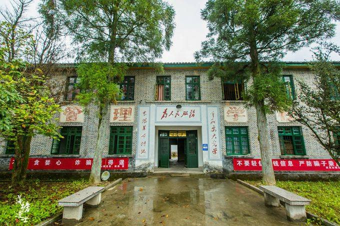 建筑墙壁上的标语清晰可见,有着那个特别年代的特征。江西共产主义大学曾经在全国声名远扬,也曾出现在电影镜头中。虽然终究被时代淘汰,校园早已废弃,却因为记录着老一辈人的奋斗青春而充满魅力。