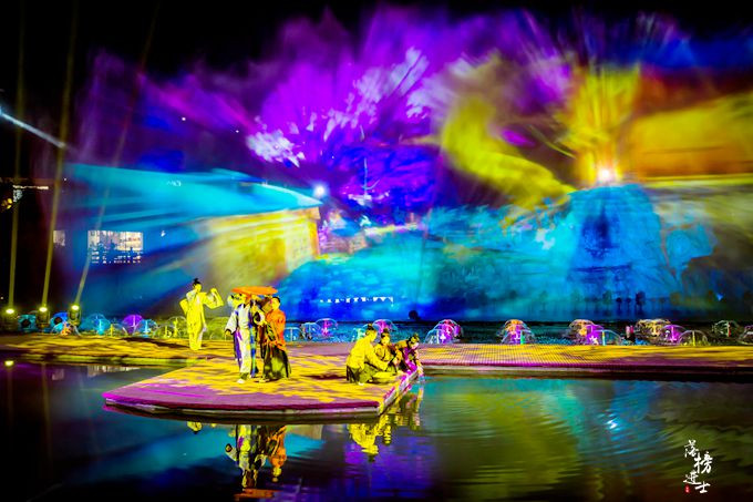 山脚下的梦幻水幕电影《归真记》正在上演,演出依山傍水,演绎了仙人葛玄一生的故事。