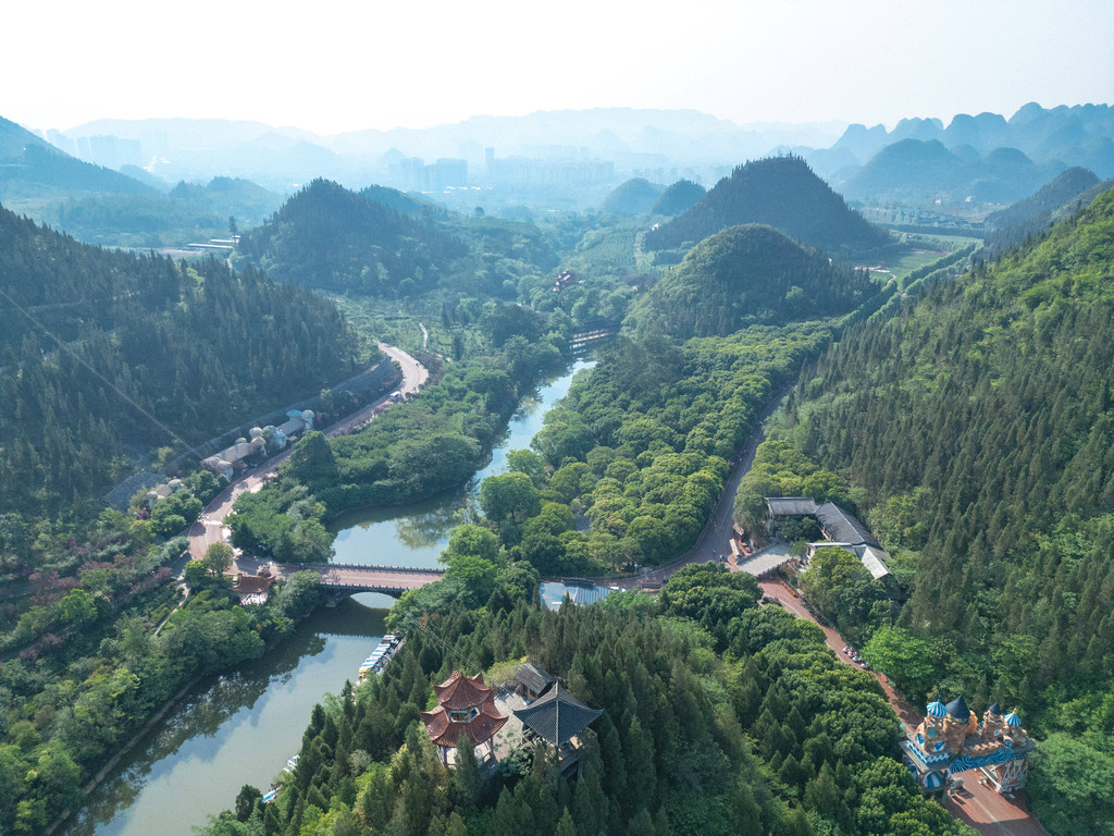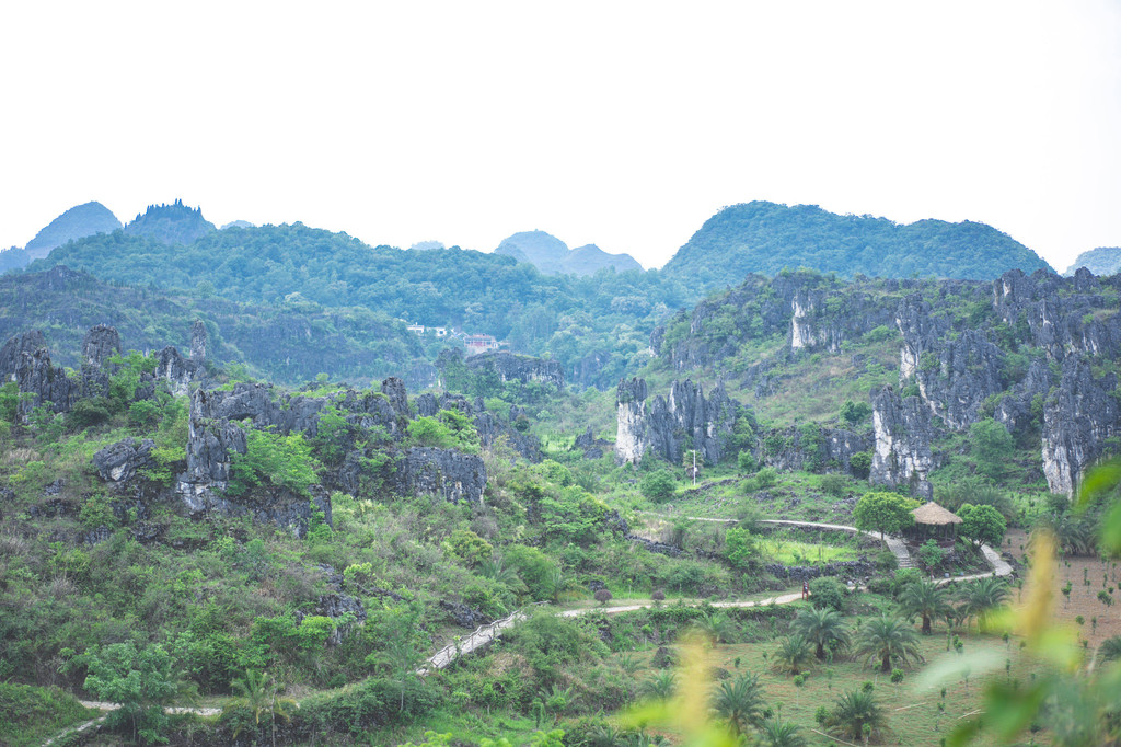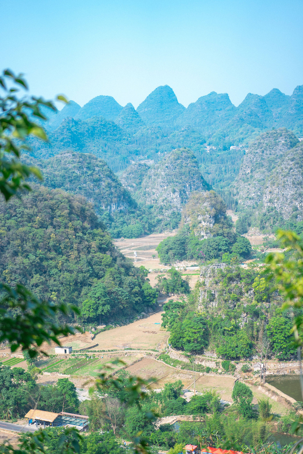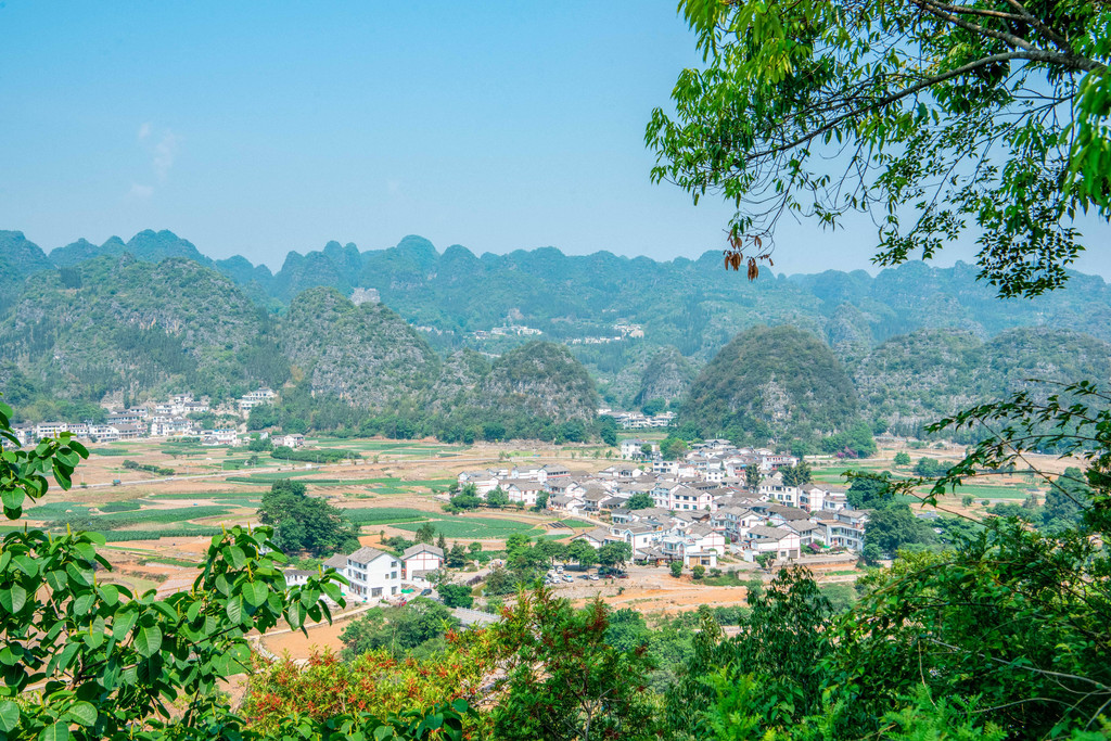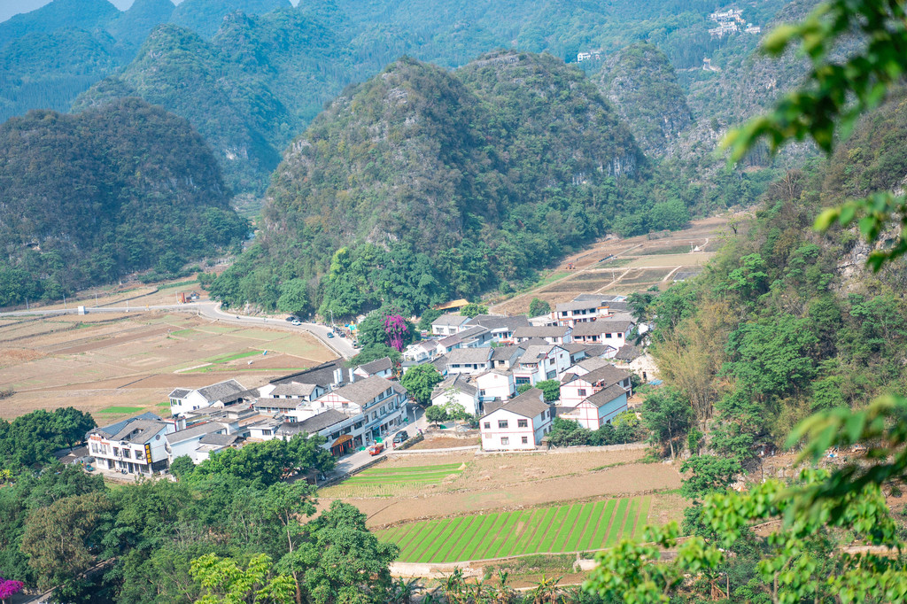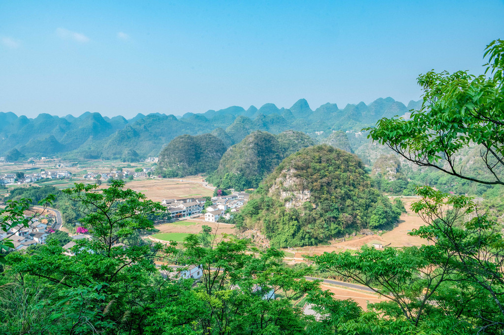这里的自然风光优美,奇美的山峦与碧绿的田野、弯曲的河流、古朴的村寨融为一体,构成天下罕见的峰林田园风光。