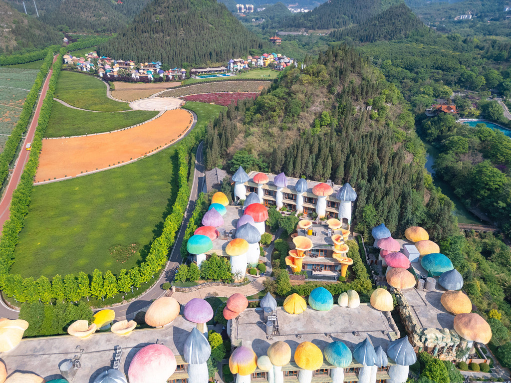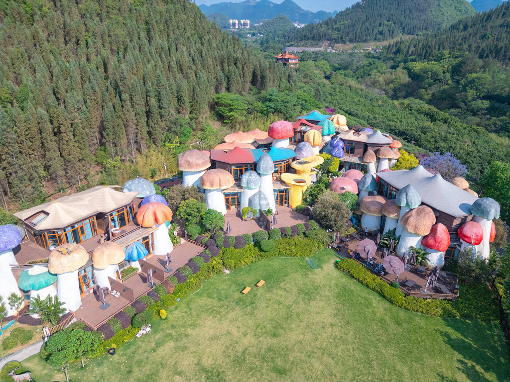 ⑥蘑菇野奢酒店:最最可爱的地方了,和“蘑菇🍄”为伴。整个酒店外观以兴义特有的菌鸡纵、青头菌、红菌、牛肝菌、荞巴菌等为主题原素设计,分为至尊区和主题区,有小黄人、米奇等特色亲子主题房,哈哈哈,住一晚不知道会不会变成蘑菇。