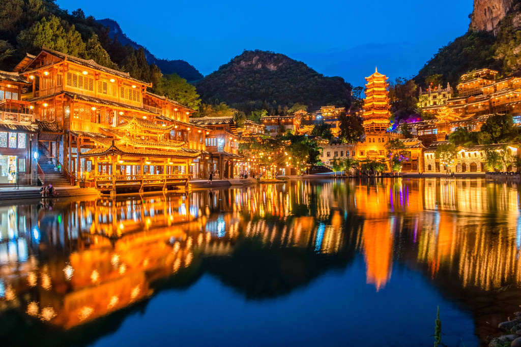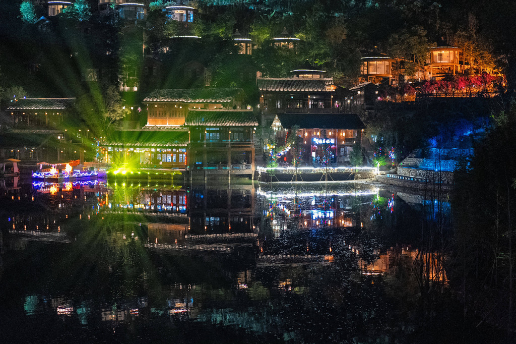 夜晚,灯光璀璨,整个景区仿佛披上了一层神秘的面纱。你可以漫步在石板路上,感受夜晚的宁静与美好。