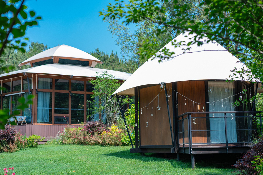 清晨可近距离感受帐篷外的云蒸雾绕、飞鸟鸣啼,傍晚可观看落日余晖,享受送来阵阵青草幽香的习习凉风;在这里,露天烧烤,面朝花海,烤烤肉、喝喝酒、遛遛娃、晒晒太阳,悠闲之乐,怡然自得。