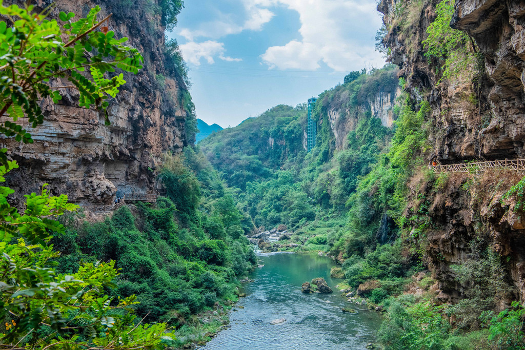 ①除了自然风光外,这里曾是古夜郎国的领地,峡谷内萦绕着远古壁画、古城遗址等夜郎文化之迷,以及铁索桥、摩崖石刻、古驿道等人文景观。