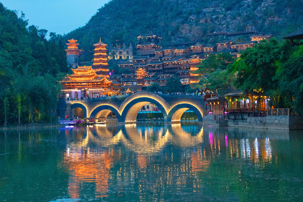 游览完大峡谷后,可三岔河国际露营基地,体验星空房车、卡丁车、攀岩等户外项目,感受不一样的休闲时光。晚上,还可以在贞丰古城品尝当地美食,感受古城的韵味。