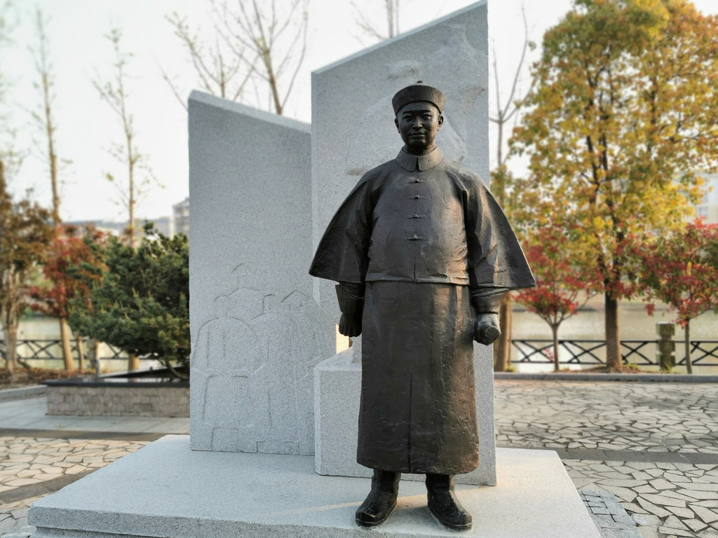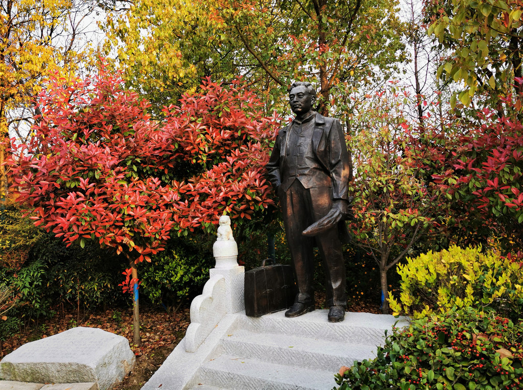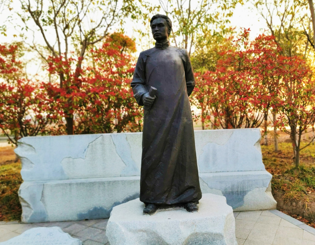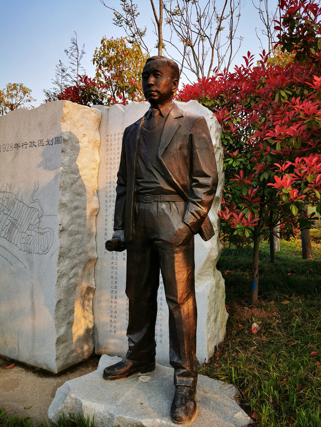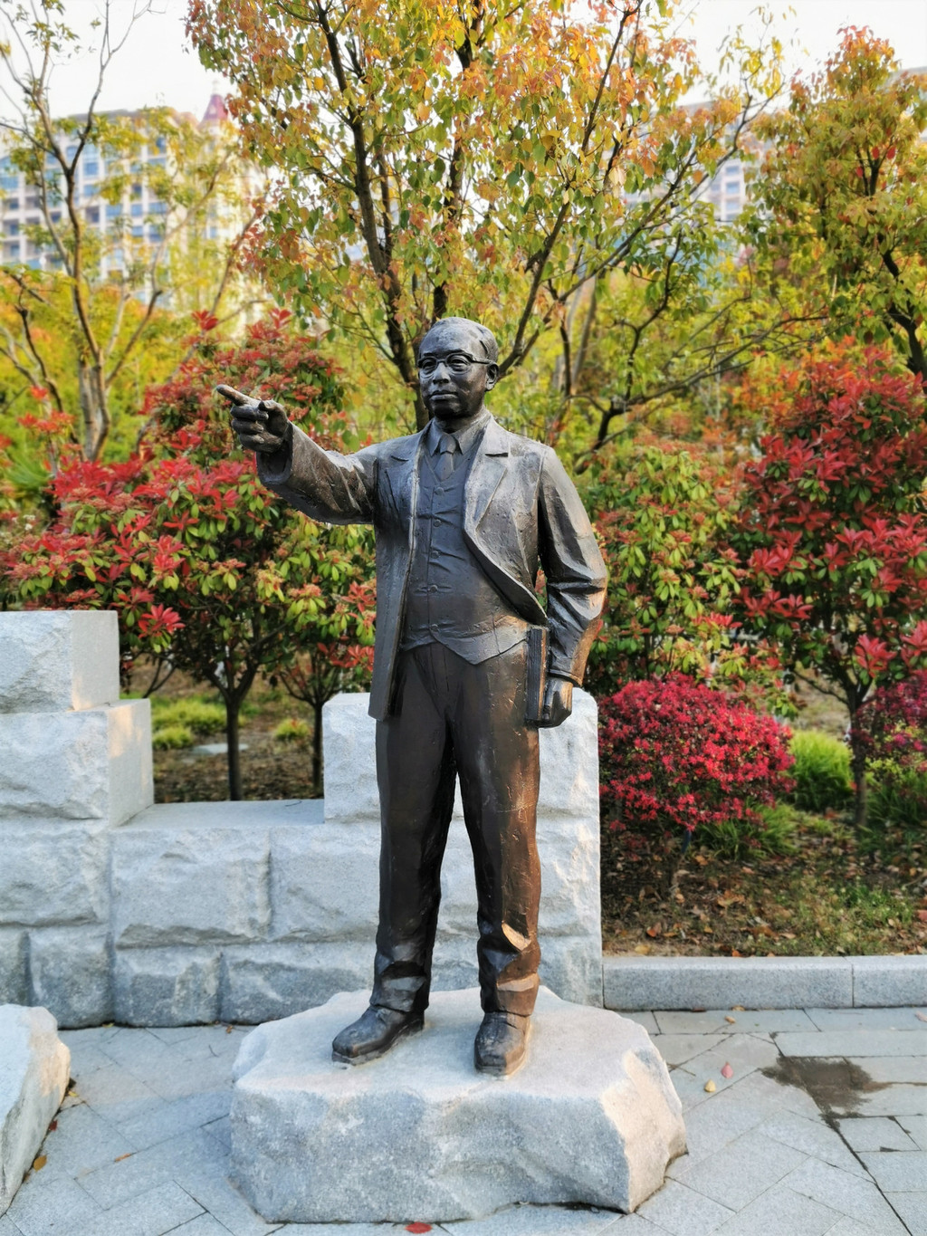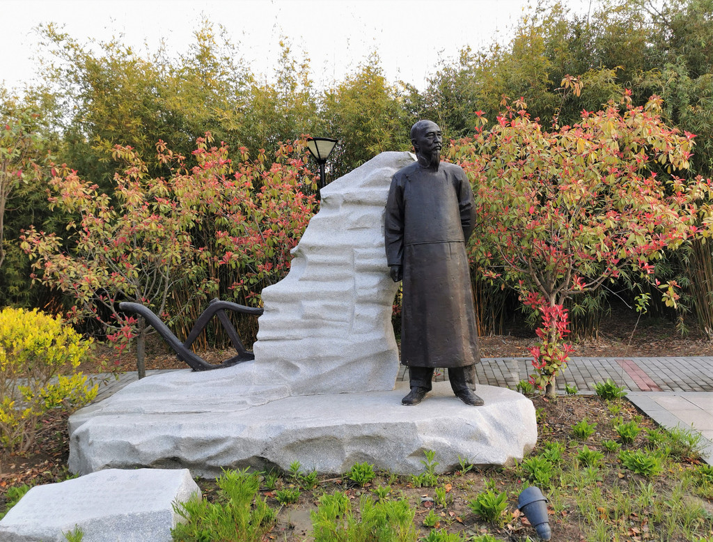 初识启东历史名人园还是在防疫最艰难的时期,经常晨练的公园关闭了,无处可去时听说了历史名人园是开放的,故前去锻炼,日复一日已有两月之久了,对这里的花草树木、人物雕塑、亭台水榭已然了如指掌,早就想写点什么,却一直无从下笔。近日疫情形势好转,园中晨练人员日益增多,花红柳绿,碧水荡漾,环境怡人。健步走在园内,从西至东,按生辰年月排列的11尊人物塑像仿佛在叙述启东那百年的历史,心中陡然一动,文思由然而起,遂动笔写下这篇东西以飨读者。