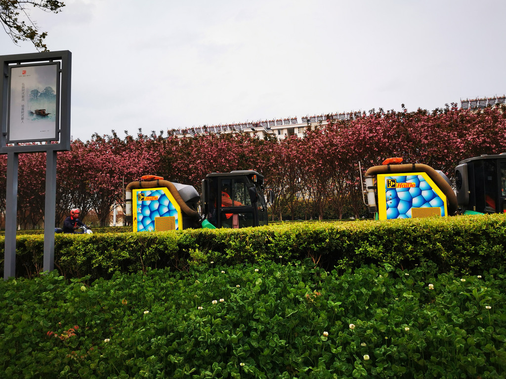 从顾民元塑像广场再向东还有2百多米的健康步道,尽头就是历史名人园的最东端了,中央河在这里转了一个90度的弯折向北去。清晨走在这里可看到环卫所的微型扫地机出动的景象,数十辆环卫车排成长龙,缓缓地行驶在中央大道的路边上,也是颇为壮观的。