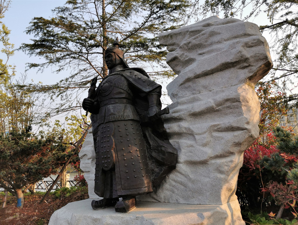 查阅1993版《启东县志》名人篇中第一位名人就是张成龙,其生于清乾隆四十九年(1784年),殁于清道光二十七年(1847年),享年63岁。张成龙原籍崇明,后移居海门和合镇(即今启东上和合镇)。从小习武,武艺出众。从军后历任把总、千总、守备、游击、参将、副将,1837年升任黄岩镇总兵。鸦片战争中张成龙在浙江痛击北上的英军,使其狼狈逃窜。1847年提升为浙江提督进京晋见皇帝,返回浙江后中暑引发背疽而亡,其墓地在家乡启东聚南北施村,早在1947年就被毁了,墓前石像生辗转多地,最终又回到他的塑像前,也算是物归其主吧!