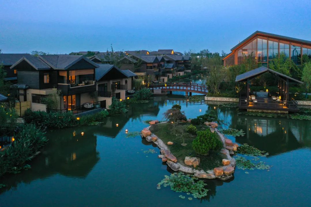 启东洲颐温泉酒店的一夜成名,源于一张酒店内的实景图,与京都虹夕诺雅颇有几分相似。一汪池水,几盏莲灯,墅于岸畔,引众人惊叹,“小京都”来了!