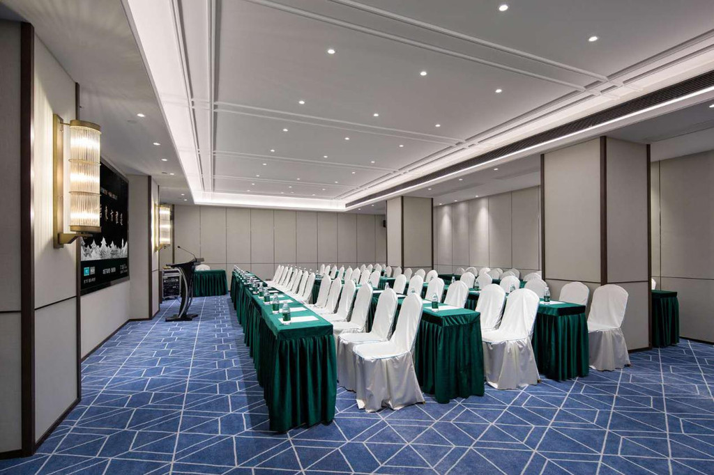 绿意雅致酒店位于祁东县新兴政务商圈,“商务”会议室自然不遗余力打造,顶级音响、灯光与投影,高级会议桌椅等等,更提供一揽子商会会议策划,让聚会、会议、年会、团拜更高效,完美实现阁下的高品位生活追求和高级别商务社交应酬。