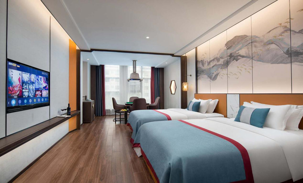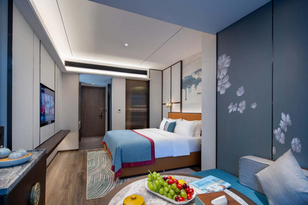 更有高端商务茶艺房、高清投屏电影房、空气净化休闲棋牌房……健身房、洗衣房、早餐厅、会议室、大堂书吧等一应俱全。酒店坚持客人至上,24小时专人管家服务,尊客、友客,严谨专业不失温度、服务细节如沐春风。