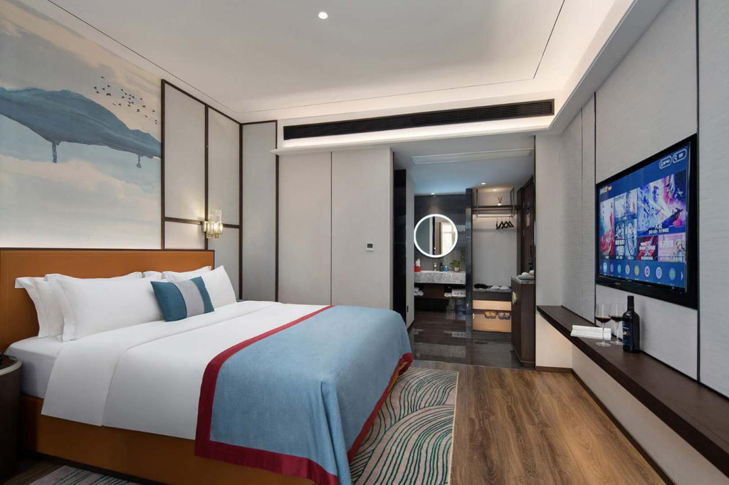 所谓健康生活,无外乎一点就是当住客放下疲惫,全身心放松,信步走过充盈着轻音乐的雅致走廊,滴卡进入房间的那一刹那,真正体会到整个房间的装修简约又不失细致,低调却不失奢华,总体偏暖色调的装修风格给人一种这就是家的温暖,此时此刻,才是入住时分最惬意与心动的时光。