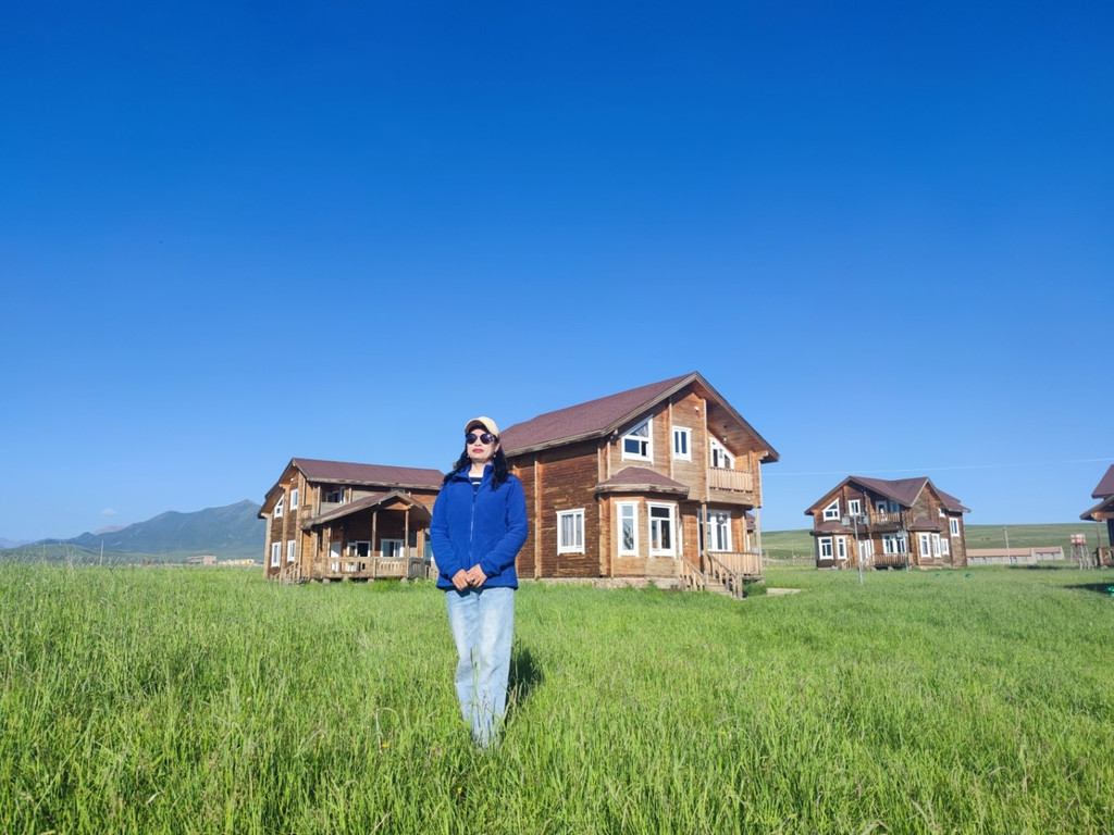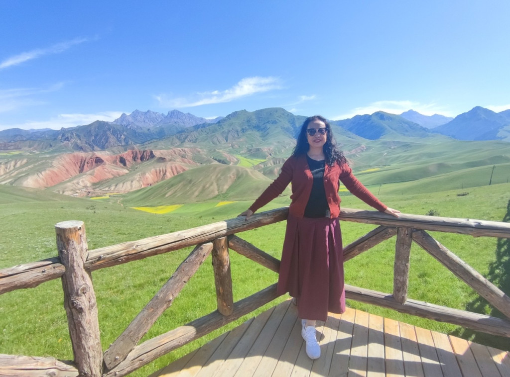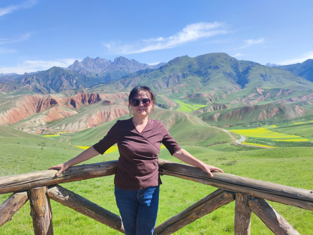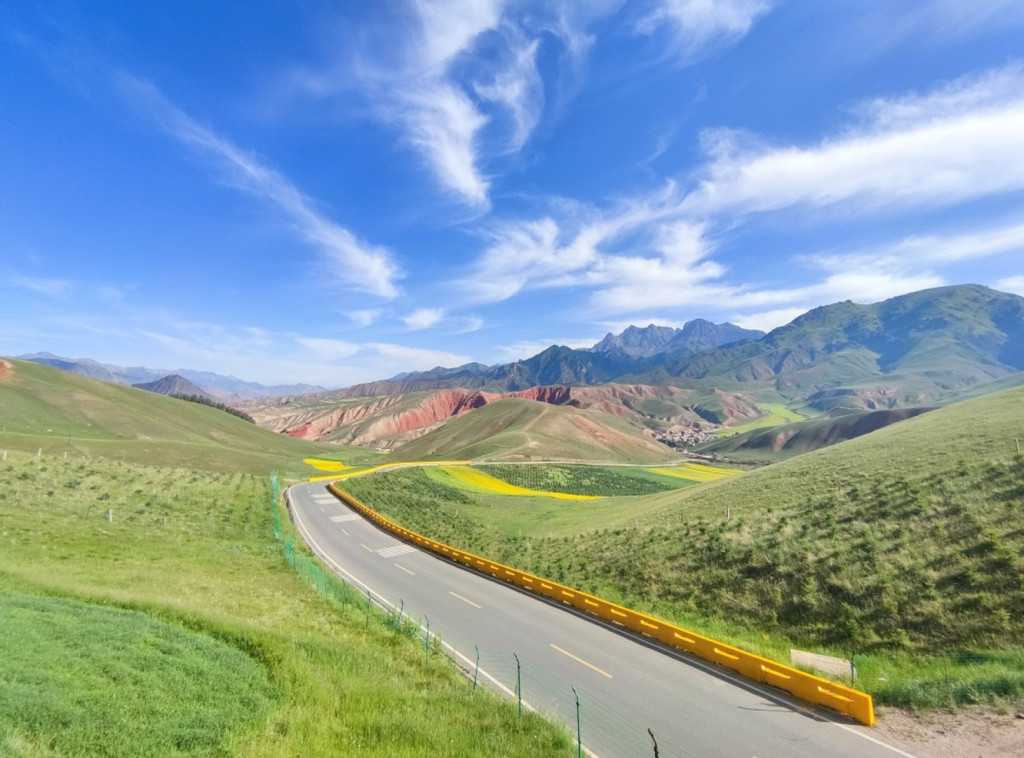 按照预定行程,今晚我们要入住 祁连 卓尔山下,所以须途经 祁连 山大草原。每当遇到美景,我的副驾晓蓉老师,只要一个眼神一个小动作,我就意识到她要停车拍照了。那必须得安排呀,而且大长腿的效果!