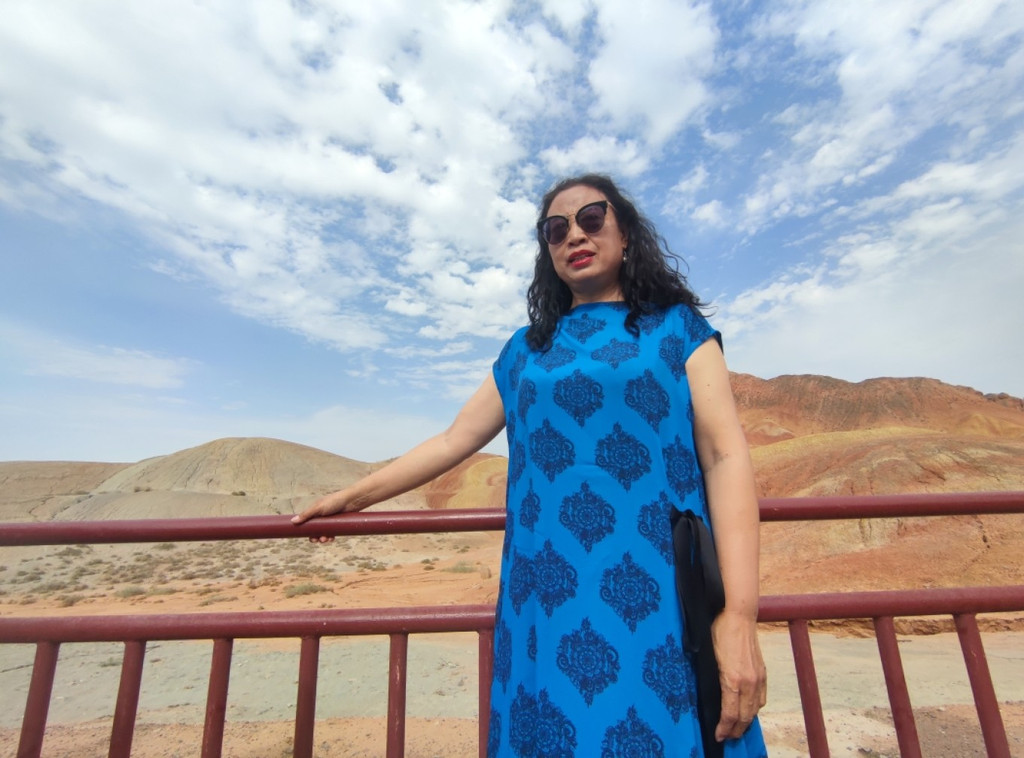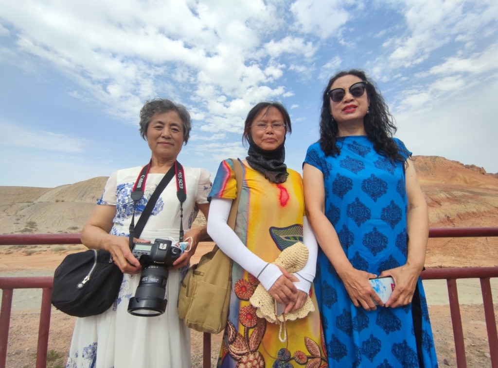 这次带的三位资深美女,来自于 山西太原 ,既是回头客,又是我的忠实粉丝,对大 西北 的可谓是情有独钟(尤其是中间这位已经来了第3次了)。所以提前一天我在花店购买了三束鲜花,以便在接机的时候给她们一个惊喜。