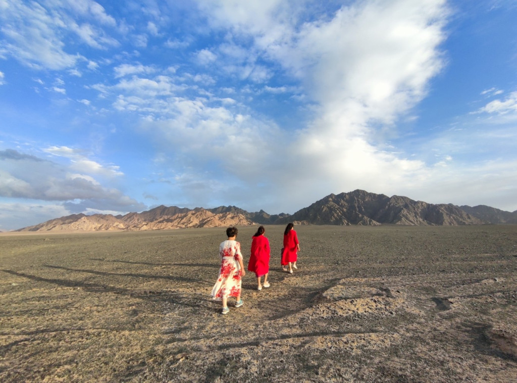 我带的客人对这儿提前也有所了解,所以执意要到这儿去,尽管我在路上说,传说中在黑山戈壁有“ 黑山老妖”存在,专虐美女,尤其喜欢资深美女,她们听了以后不以为然,齐声附和道: