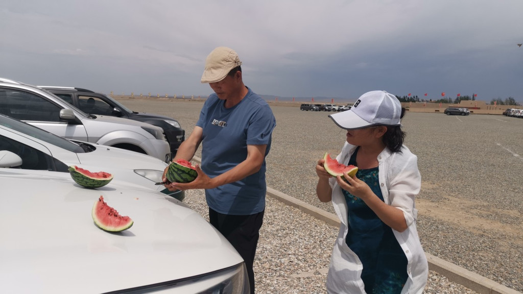 天气炎热,必须吃瓜,暴力切瓜,手法娴熟,饱餐一顿,继续向西。