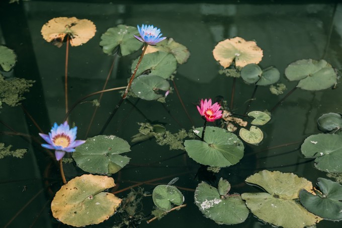 向外延伸的地方做成了水池,池中养了莲花,270°全玻璃的茶室就建在水面上,我们喝茶,孩子玩耍,低头看水景抬头坐拥蓝天白云。