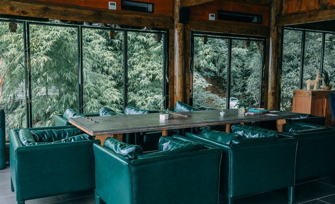 前台是复古风,铜色吊灯斑驳木台,每一个细节都有时间流过的痕迹,大厅另一侧又兀自清新起来,网红气质的轻文艺沙发,窗外尽是绿色植被,度假的心情一直都在。