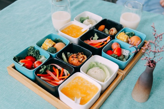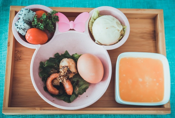 还有专门为孩子们准备的儿童早餐,营养搭配给100分,口味清淡,也特别适合小朋友,据说配菜每天不重样!