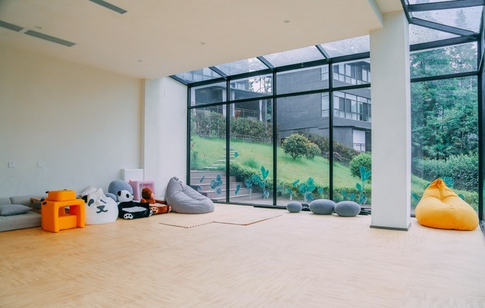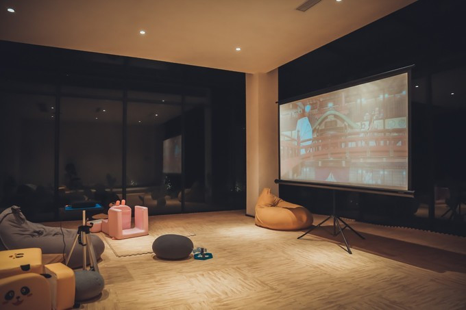 还有精致的水吧和儿童天地,享受抚慰心灵的美食美酒同时也能轻松兼顾带娃!水吧紧挨着的玻璃房子晚上摇身变成为“儿童放映室”。