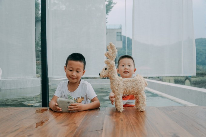 酒店每天还有丰富的活动:草坪音乐会、山野探秘,森林下午茶、儿童放映室大电影、山境草编等等,两个小家伙体验了创意画,可谓心满意足呀!