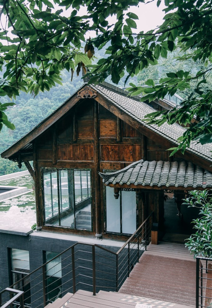房,草,木,清风摇曳,步步皆景,精心雕琢,建筑与自然逐渐融为一体,相辅相成,沉醉在这山色中。