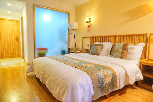 一间院子,37间房,总共5种房型:双床房,大床房,亲子房、家庭房和私汤房。