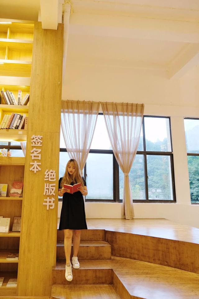在侧面的书架甚至还有作者签名的限量款或绝版书,爱书之人如同获得至宝,在这山中的图书馆,淘到心仪的书,回家珍藏。