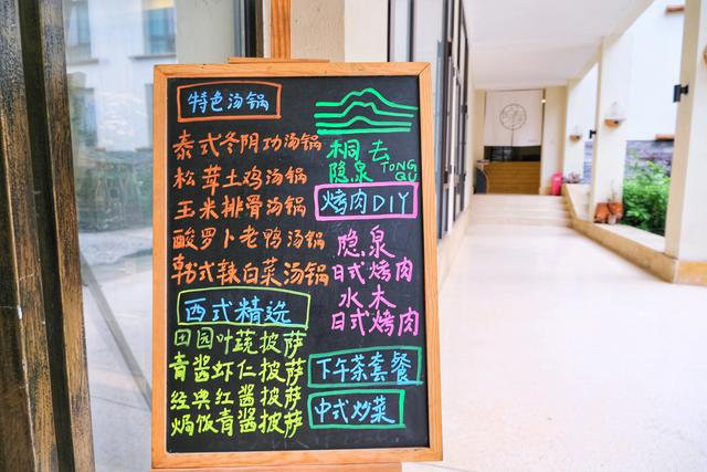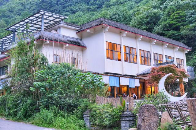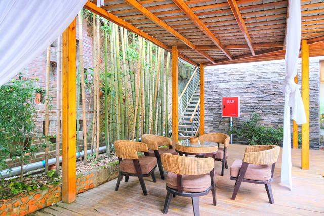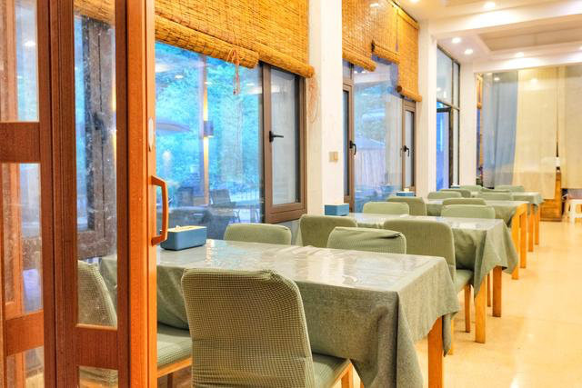 餐厅室内室外都可以用餐,在中午可以选择室内用餐,下午就可以在室外,吹着山风,听着流水潺潺。