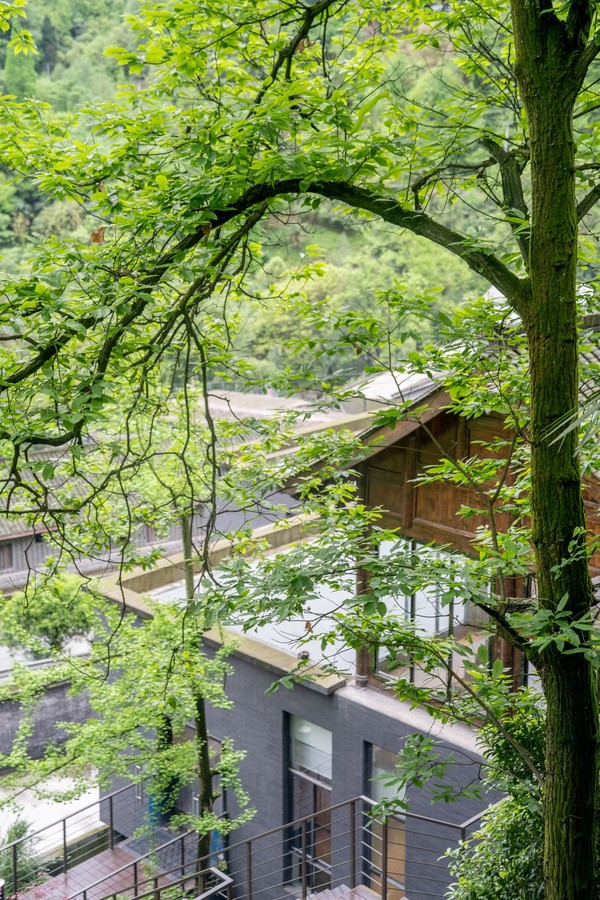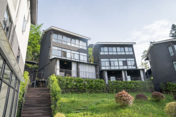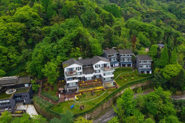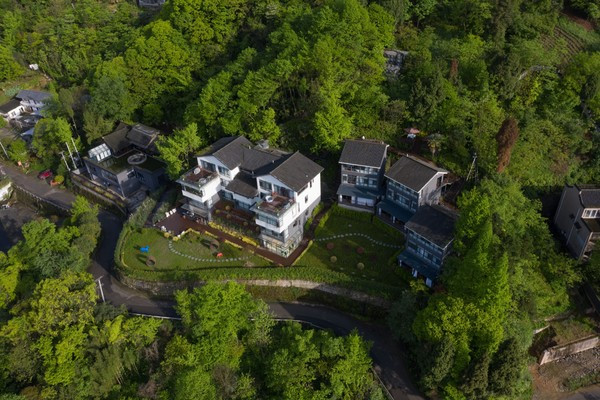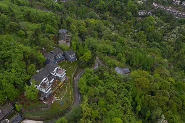 车子进入青城山,驱车数十分钟左右,海拔攀升到了1000米以上,就能在山林交错处窥见几栋独立的小楼。这里就是桐去山境了。