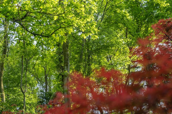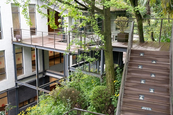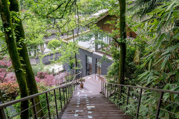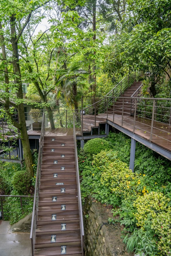 五栋建筑都由树林中修建的步道紧密相连着,步道两旁皆是原生葱郁的树木,非常幽静、也非常适合拍照。