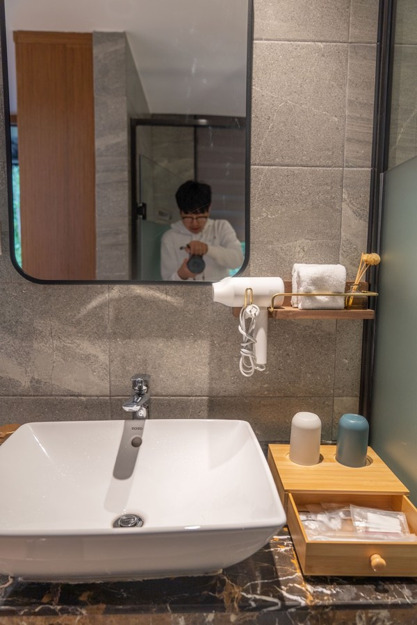 房间内的设施完备,而且选品都很不错。卫浴是全套的TOTO,洗护用品都是日本进口的,还有床垫则是金可儿的,这些细节都提高了入住的精致度和舒适感。而这些小小的心思也足可窥见民宿的用心。