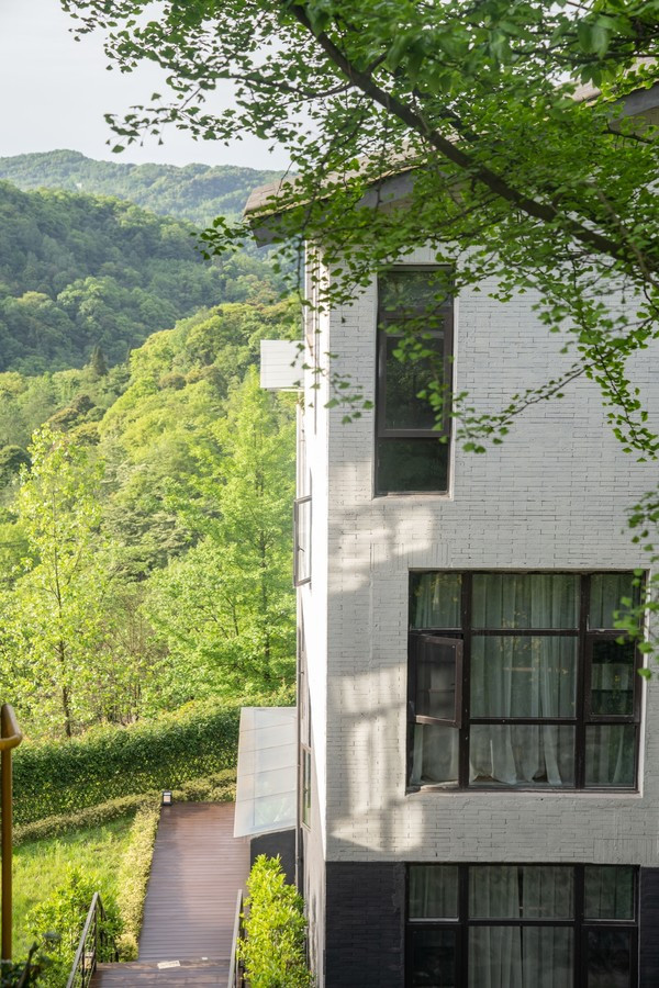桐去山境民宿就在青城后山,从成都市区自驾出发大约1h左右,这里被四面环山的满满绿意所包围着。