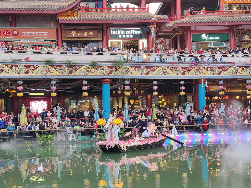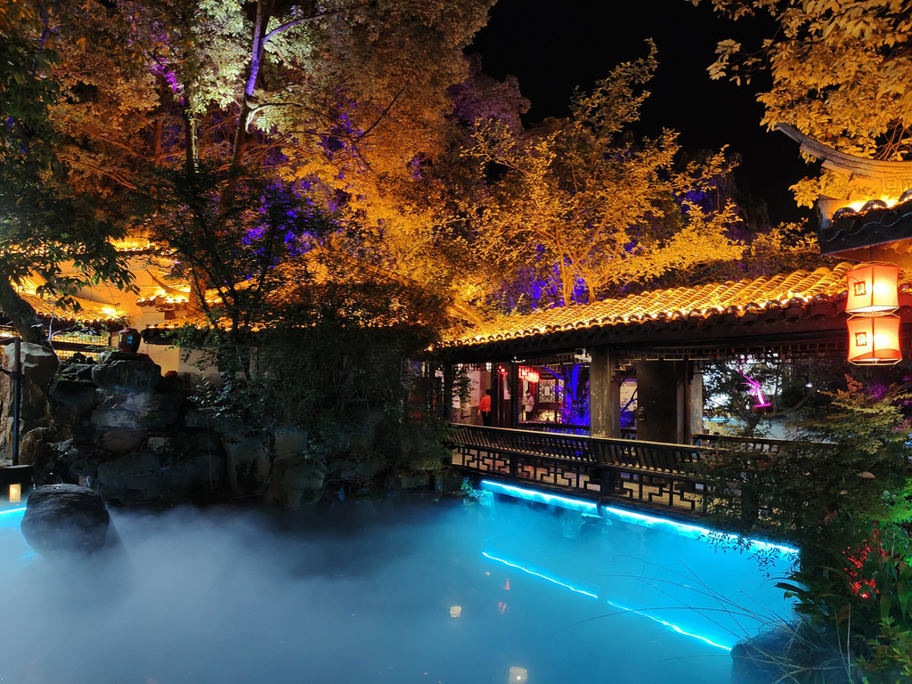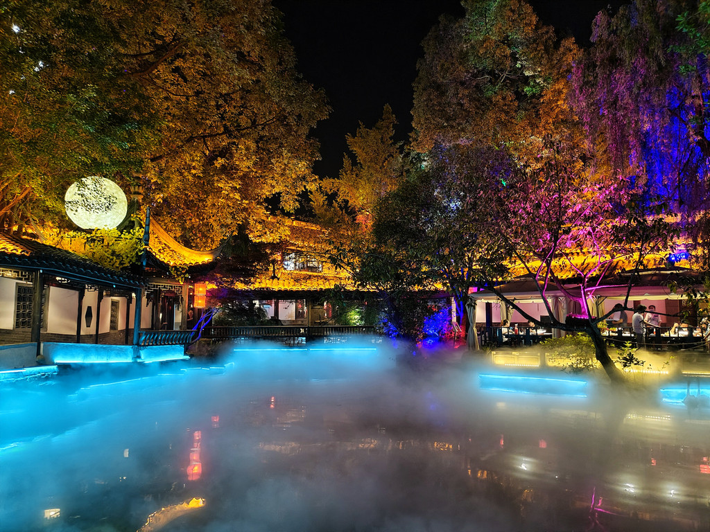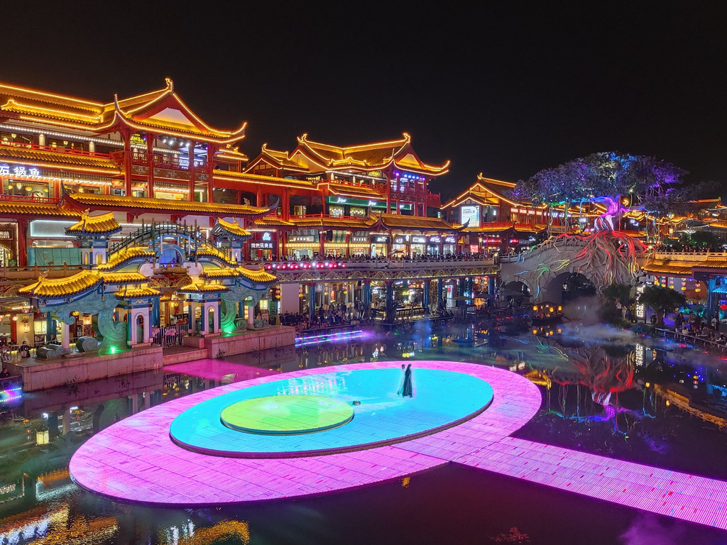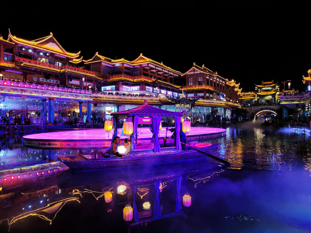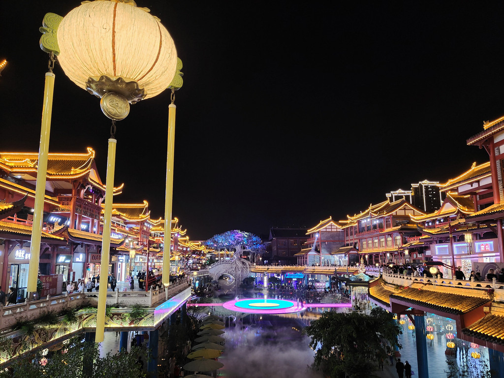 14、蜀大侠火锅(侠客印象店)可以下午16点左右去,先拿号排队,排队期间,可以拍拍日景,等开灯了,可以一边吃火锅,一边拍夜景,环境无敌了。我们运气超好,排到的是景观位,整个店估计有200-300桌位,但最好的景观位不超过20个。