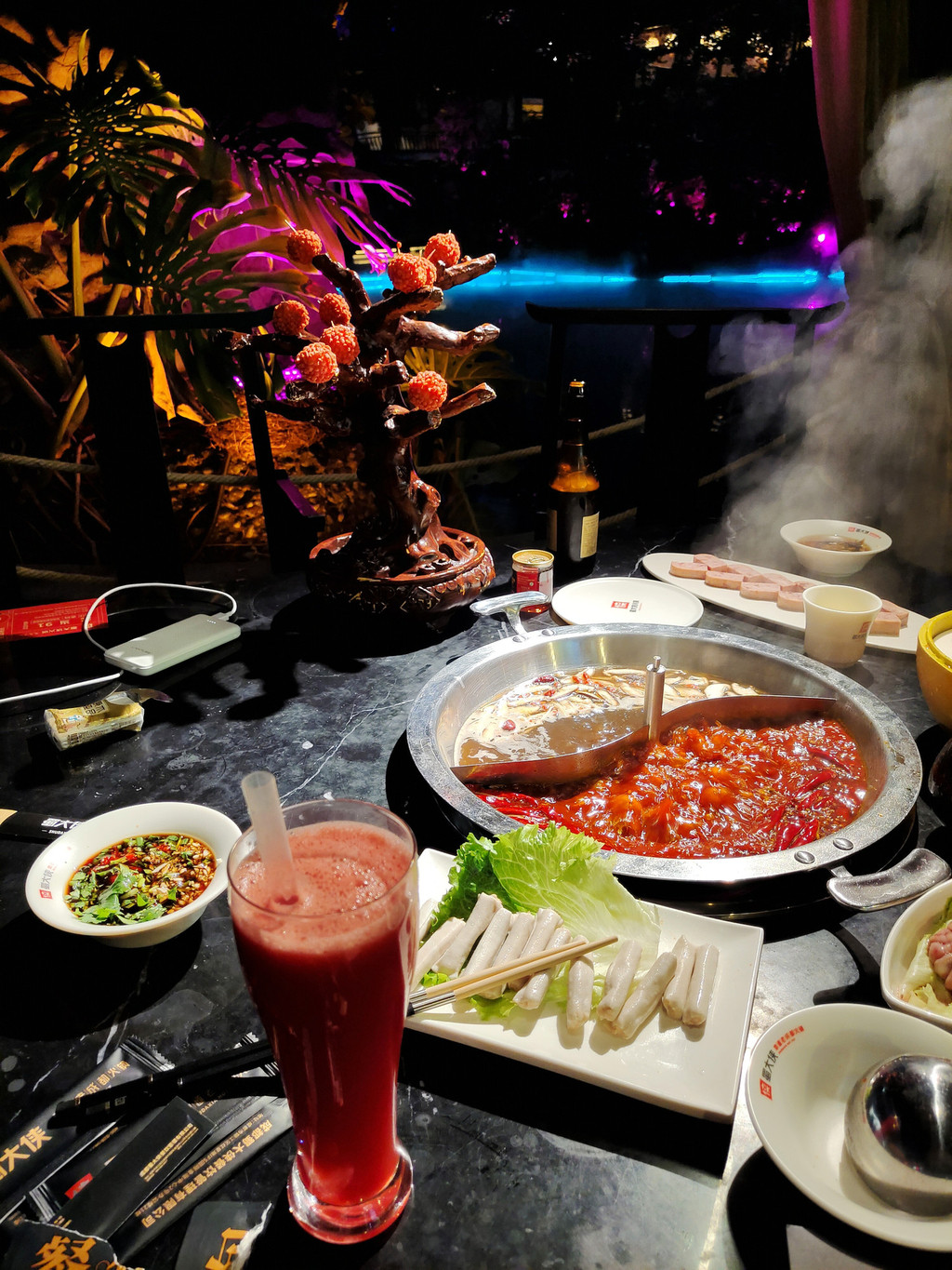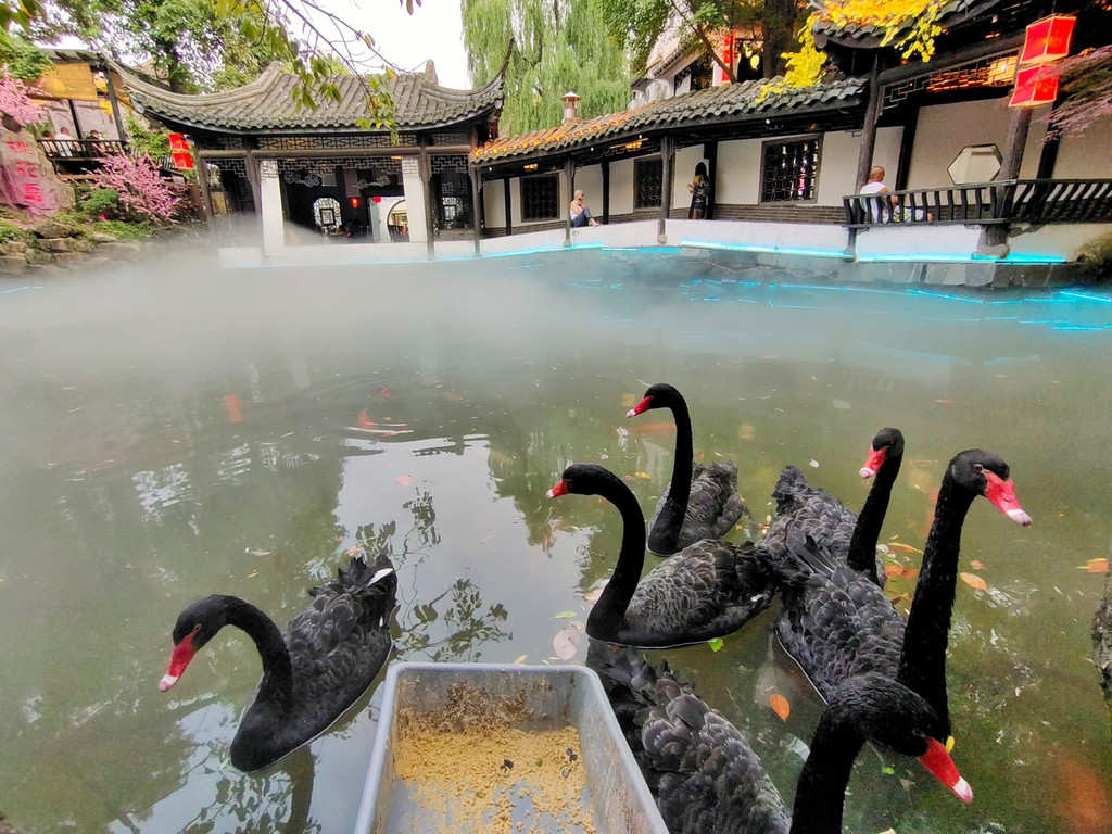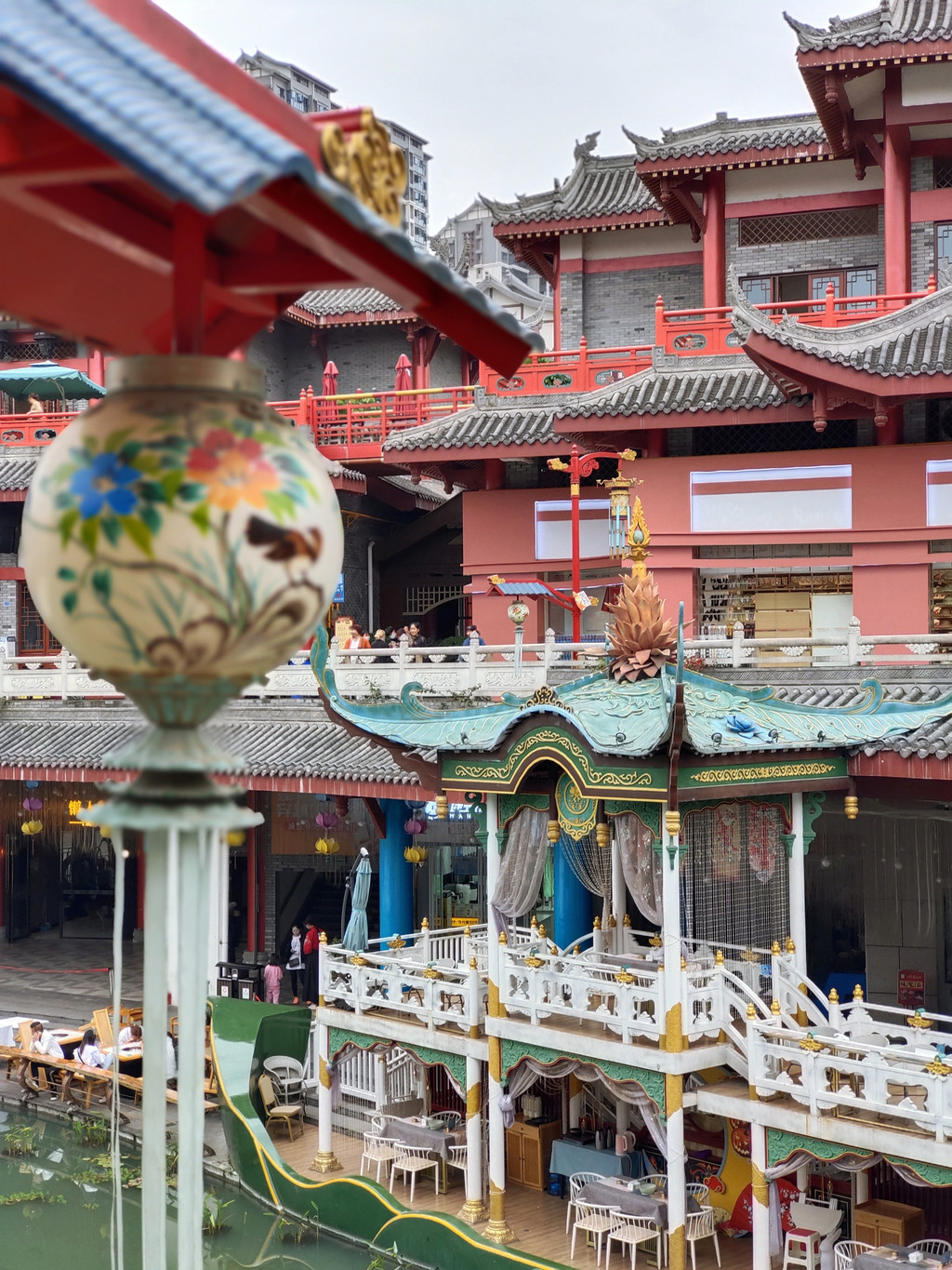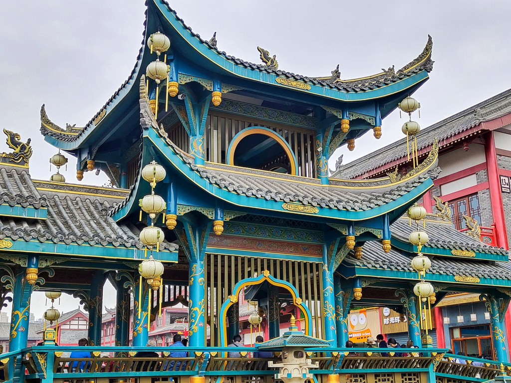 14、蜀大侠火锅(侠客印象店)可以下午16点左右去,先拿号排队,排队期间,可以拍拍日景,等开灯了,可以一边吃火锅,一边拍夜景,环境无敌了。我们运气超好,排到的是景观位,整个店估计有200-300桌位,但最好的景观位不超过20个。