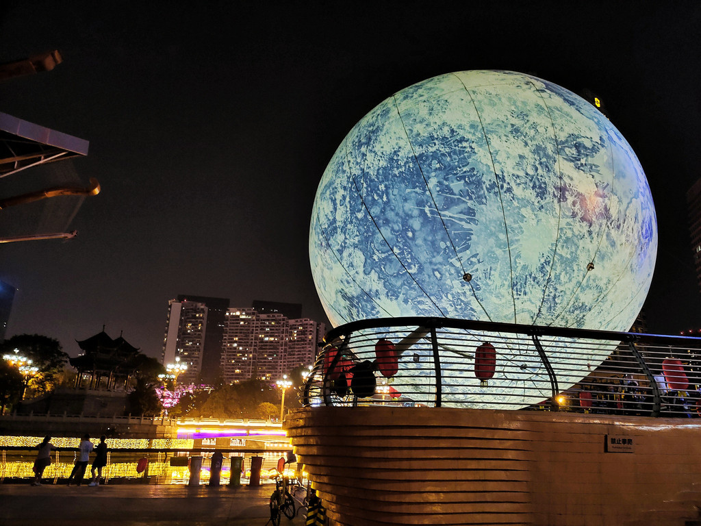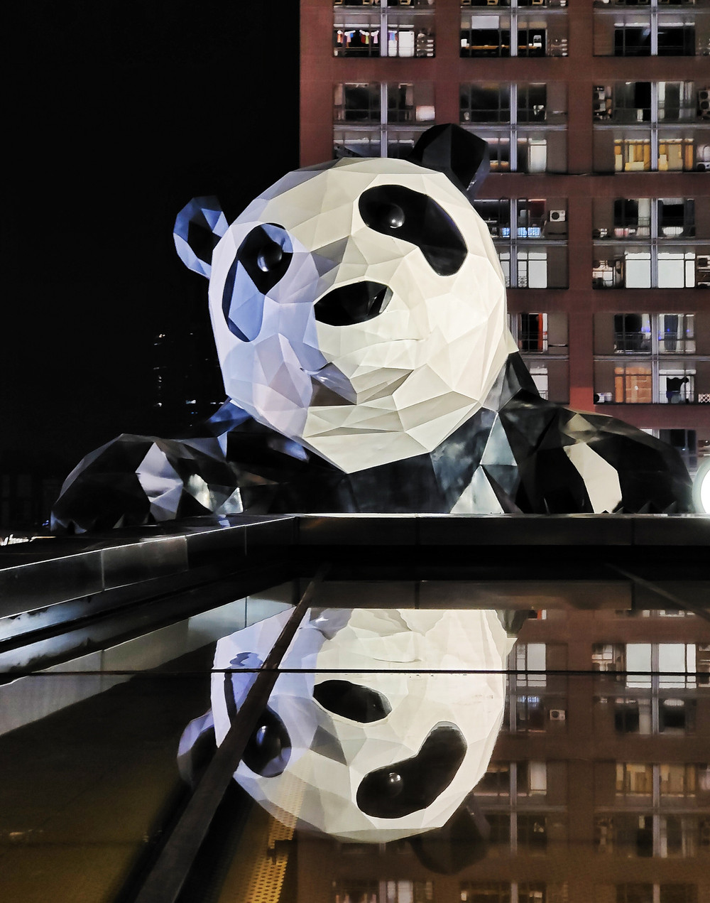 10、春熙路地铁站出来就能看到IFC楼顶的大熊猫屁股,可以乘电梯到顶楼拍大熊猫的正面。我是晚上23点不到点上去的,还有很多人在排队与大熊猫合影。