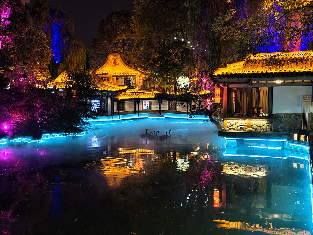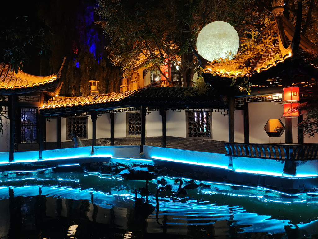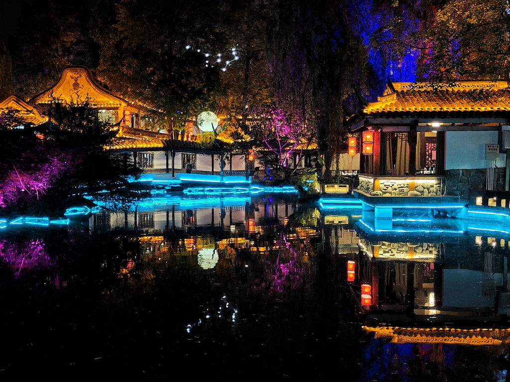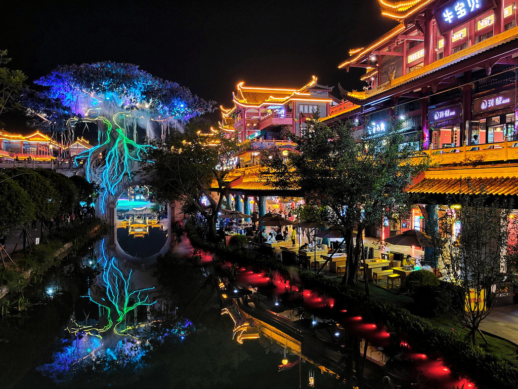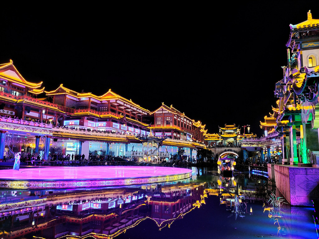 5、眉山的东坡印象水街晚上表演好像是19点开始,两岸都有景观就餐的位子,吃饭的话800起一桌,喝茶的话好像是288起,但感觉表演质量不高,没必要景观位。东坡印象水街还是可以逛逛的。建议16点左右到,先拍拍日景,再吃饭,吃完饭,夜景开灯后可以拍夜景,看表演。