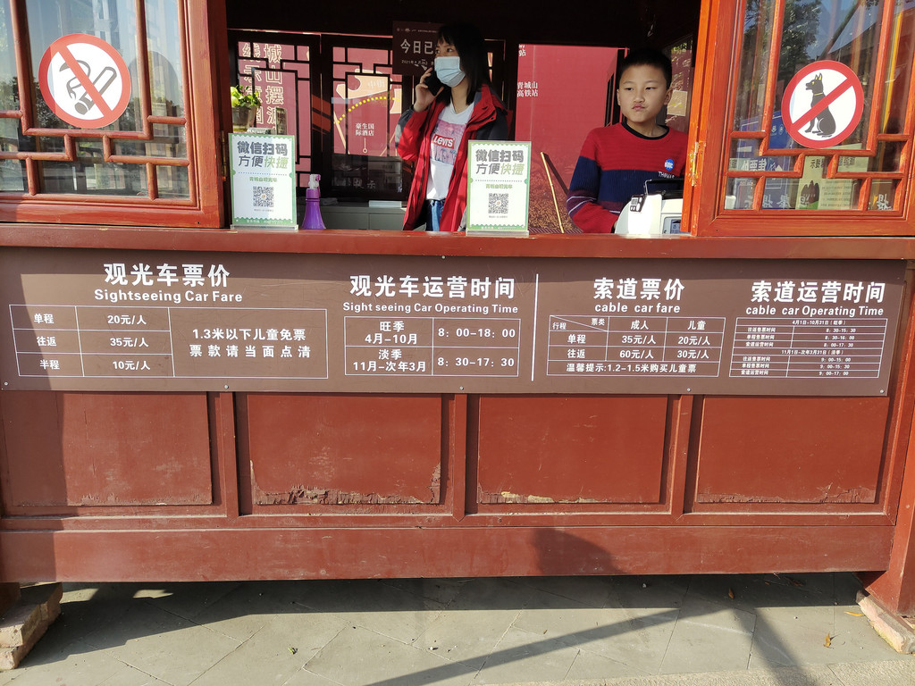 7、青城山前山8点开门,我们是7点30打车过去的,一定要和司机说开到检票处。司机说7点45分也不知道是7点50分,出租就不能直接开到检票处了,需要步行一段路,或者乘景区观光车,不合算。